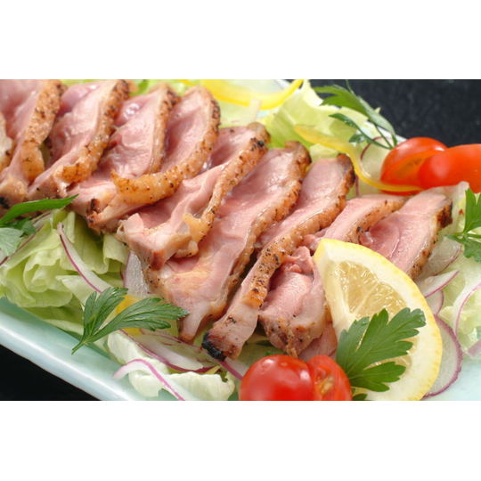 純粋 名古屋コーチンの霜降りもも肉を ・ニンニク ・塩 ・粗挽きブラックペッパー で味付け後、炭火で「たたき」に調理済みです。薄くスライスして、ポン酢、辛子醤油、等でお... -